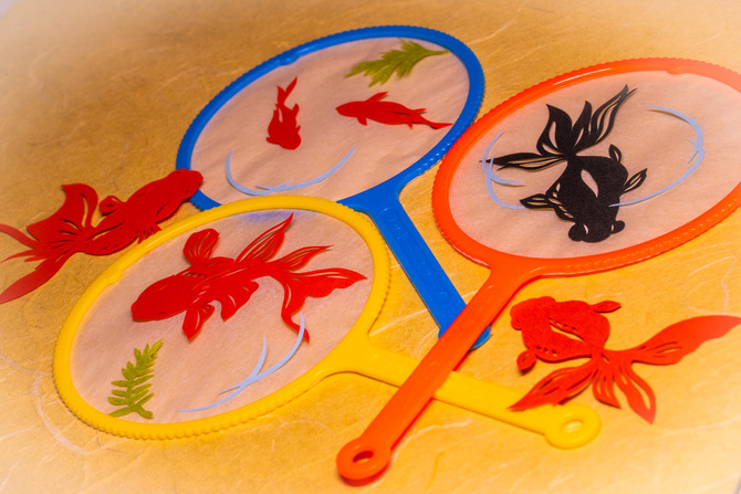 大和郡山にちなんで、金魚すくいのポイに簡単な金魚の切り絵を貼り付けてもらうという内容です。